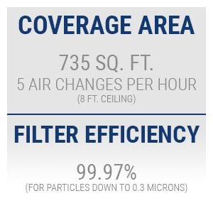 Let's keep this simple. Our portable HEPA air scrubber covers 740 sq. ft at 3.4 air exchanges an hour.