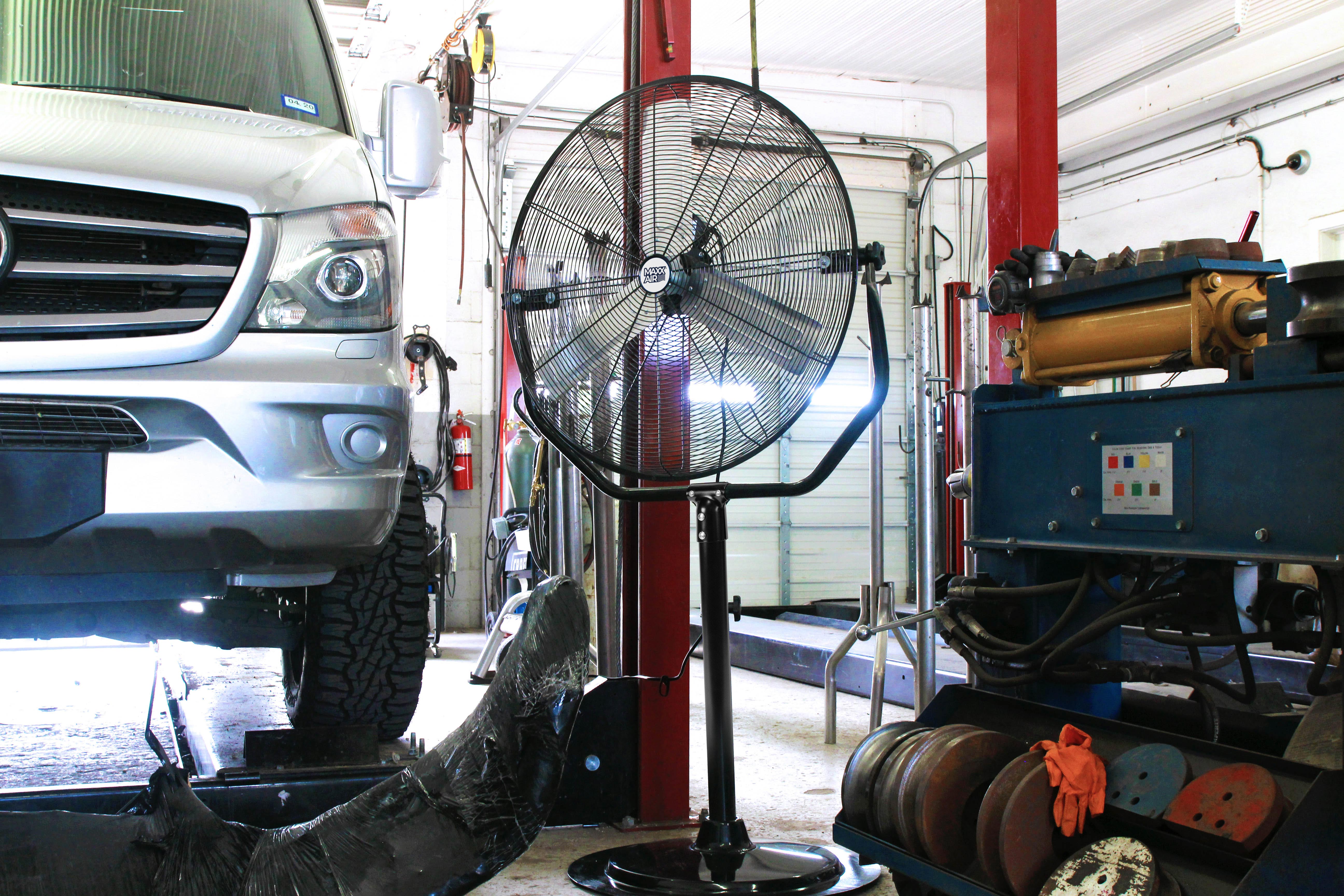 The 30 In. 3-speed yoke pedestal fan is designed for industrial, commercial, and agricultural use indoors. Cool an ever larger area than non-oscillating models, making it perfect for factories, warehouses, large barns, and even garages! A powder coated finish and all metal construction make this fan rust-resistant, durable, and easy to maintain. This unit is easily assembled using common household tools and provides 3 powerful speeds and an on/off oscillation function for versatile airflow levels. Adjustable comfort is paramount—tilt the fan up or down up to 90° using the tool-free adjustment knob for quick, user-friendly customization.