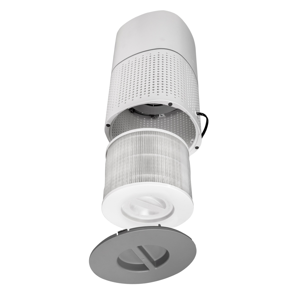 | Filter: | Composite cannister filter composed of pre-filter, carbon filter, and HEPA filter works to remove particles 0.3 microns and larger in size for cleaner air |
