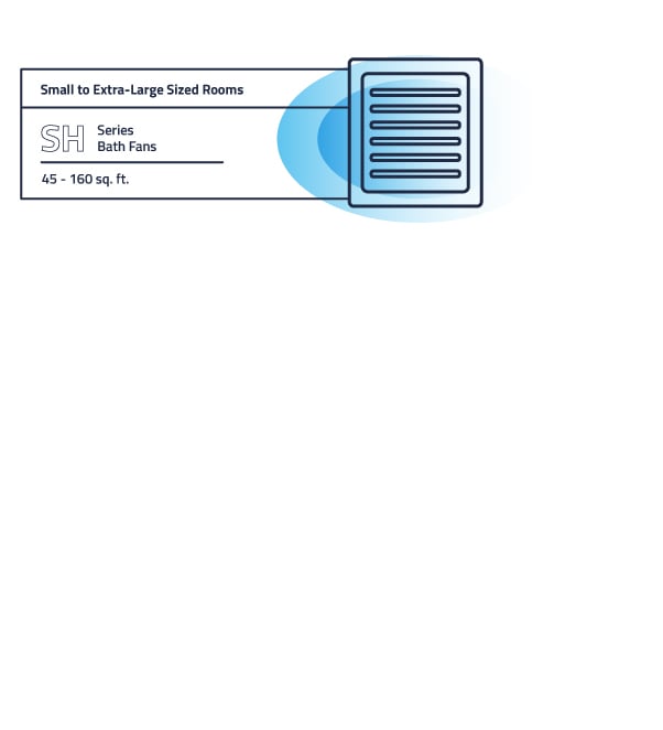 A warm shower is great, but all that unventilated steam and moisture can set up your bathroom for mold and mildew (and the damaging after-effects of removing it). Installing an SH series bath fan aids in removing this moisture in bathrooms ranging from 45 - 120 sq. ft.